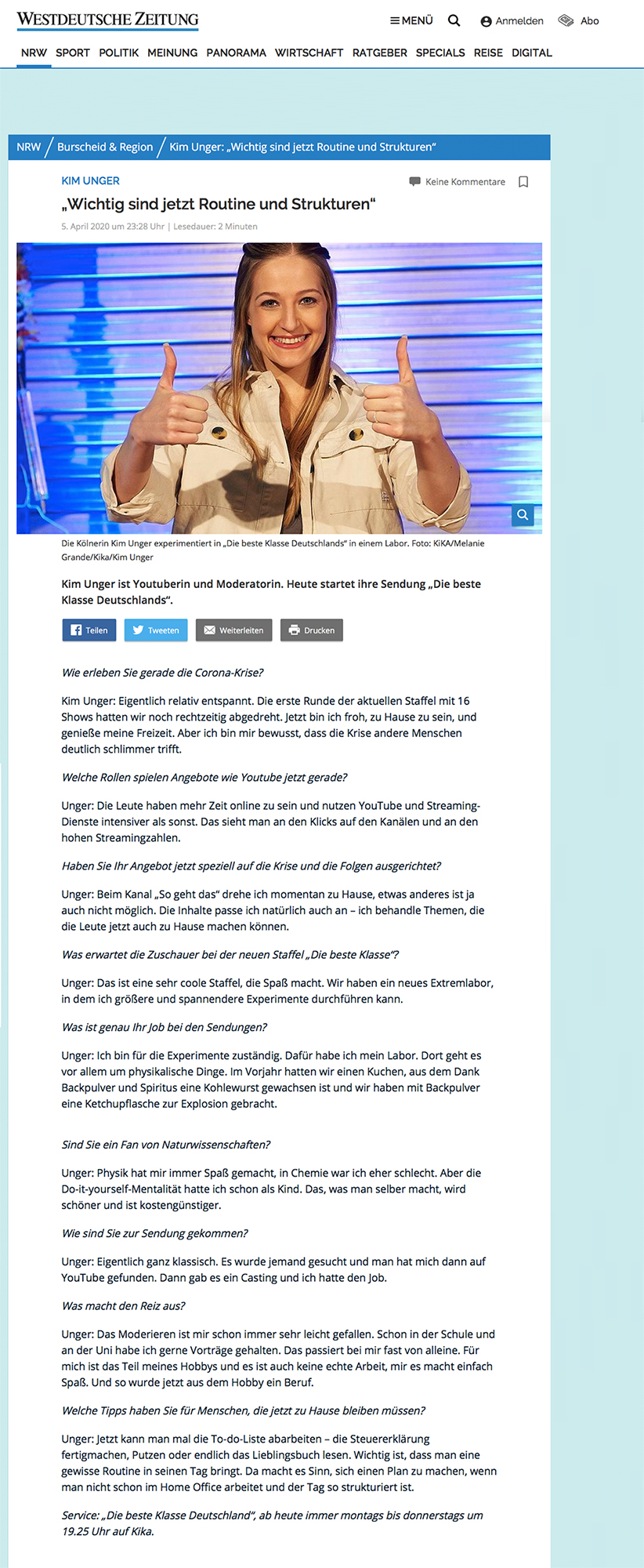 | 2018 - 2020 | Moderation & Expertin für Experimente bei Die beste Klasse Deutschlands (ARD/KiKA) |
